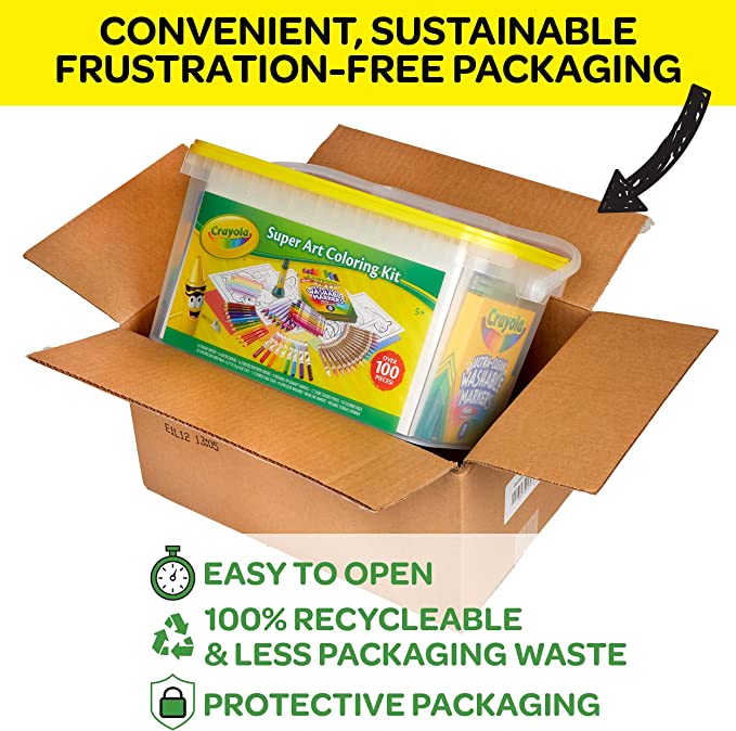 - CRAYOLA ARTS & CRAFTS KIT: This set includes Crayons, Glitter Crayons, Construction Paper Crayons, Pipsqueaks Skinnies Markers, Short Colored Pencils, Coloring Pages, Mini Construction Paper Sheets, a Washable Glue Stick, Colored Chalk, Classic Ultra-Clean Broad Line Markers, and Reusable Storage Tub.