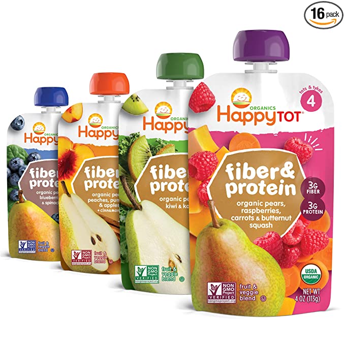 Happy Tot Organics Stage 4 Baby Food Pouches, Gluten Free, Vegan Snack, Fiber & Protein Fruit & Veggie Puree, Fruit & Veggie Variety Pack, 4 Ounce (Pack of 16)