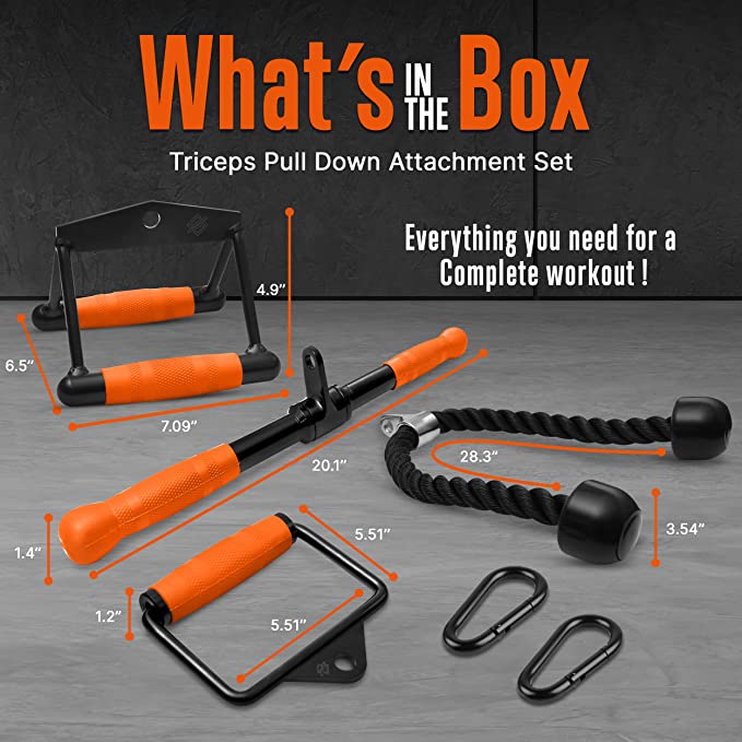 • ADVANCED MUSCLE BUILDING EXERCISE EQUIPMENT: The Triceps Pull Down Attachment Set is engineered for maximum durability – perfect for developing triceps, biceps, back, shoulders, and abs and improving grip strength